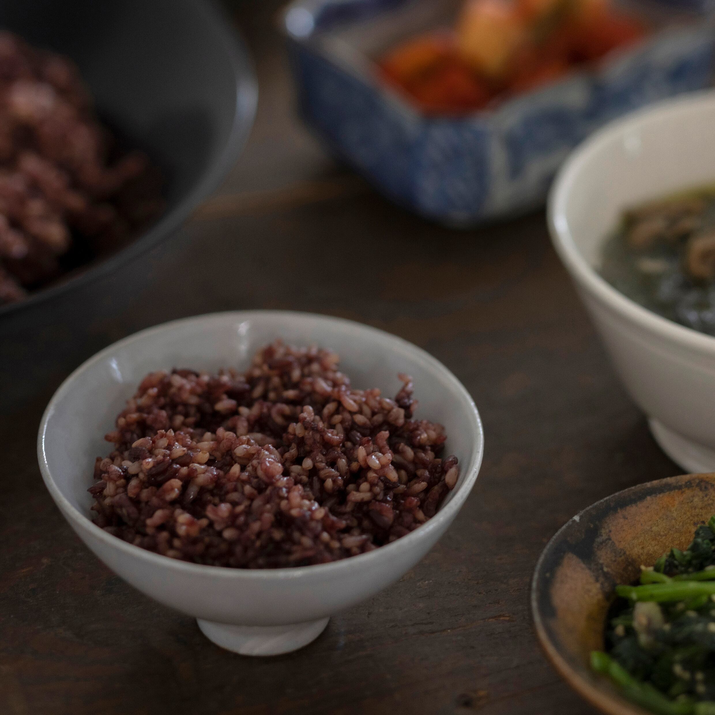 アントシアニンが炊飯時に溶け出し、ポリフェ玄米を美しく染め上げます。